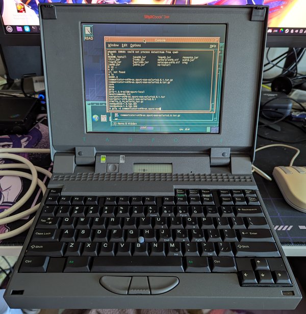 Sometimes you learn about the existence of a rare and unique machine and just have to get one. Such was what happened when I learned about the company Tadpole Computers and their Sparcbook line of laptops. What makes this special besides being a rare and very expensive rugged laptop from the mid 90’s is the fact it is powered by a Sparc CPU and therefore runs Sun OS/Solaris Unix. This one arrived with a dead SCSI hard drive and a faulty VRAM chip, but I managed to replace both, resulting in a rare gem of a machine.